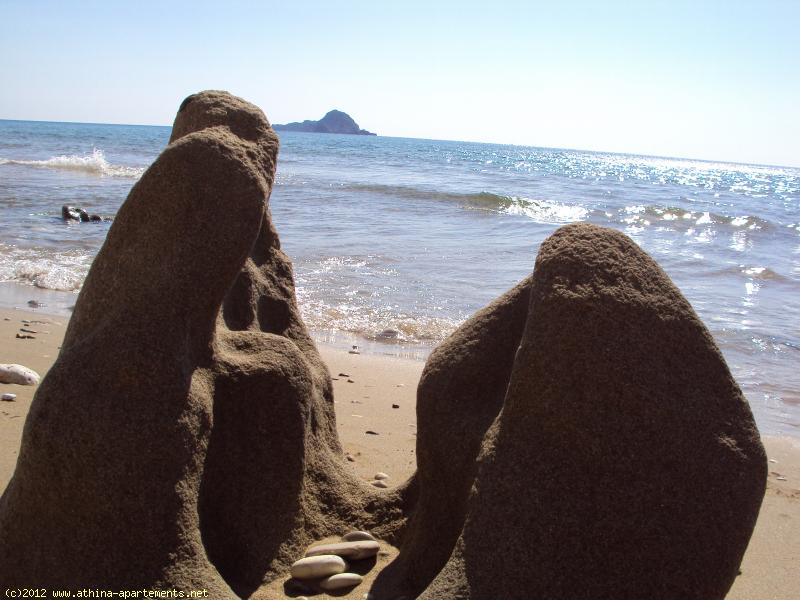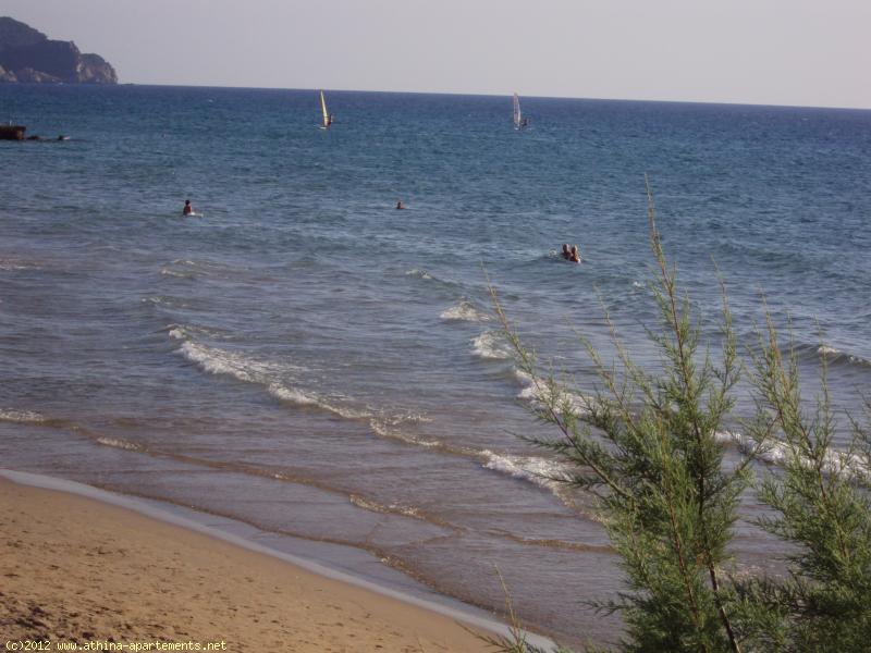 There is the evergreen countryside with inpressive olive groves and also the sandy beach with its natural beauty. The turquiose-blue waters and the soft sand invite our guests (and us) from May till autumn for swimming and relaxing. In addition, there is a range of water sports like water skiing and paragliding and also a pedal boat and surfboard rental.