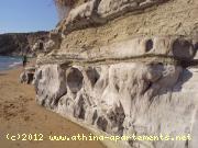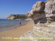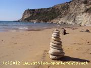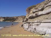 At the central beach area in front of the promenade you can rent umbrellas and deck chairs. Right and left hand side the beach continues a few hundred meters in front of the cliff. If the sea permits you can walk there easily but sometimes you need to wade through the water. But the effort is always worth it. These areas are usually quiet and undisdurbed by curious eyes.